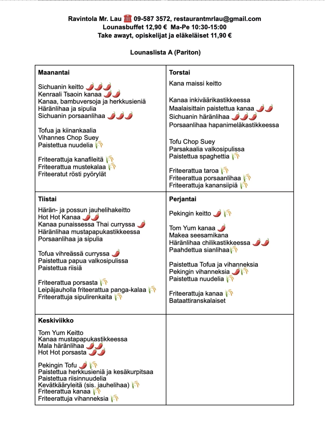 Ravintola Mr. Lau 09-587 3572, *protected email*