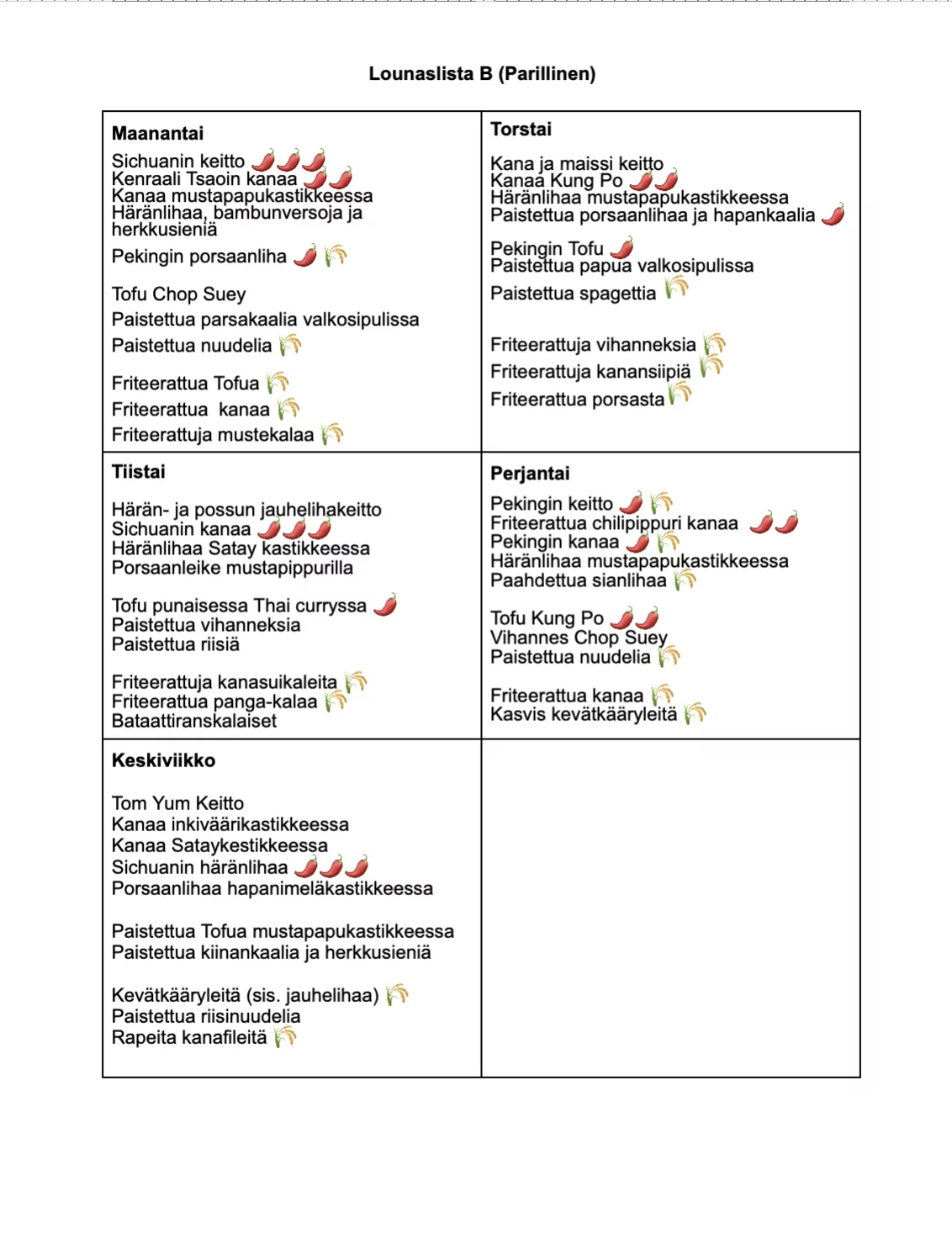 Take awayt, opiskelijat ja eläkeläiset 12,50 €